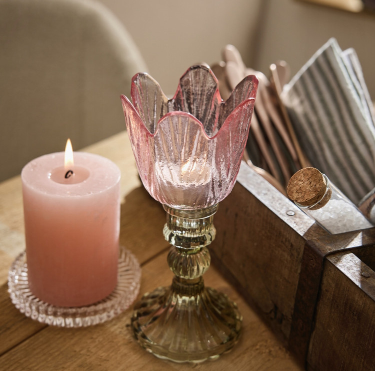 شمعدان شیشهای رنگی طرح لاله، با طراحی ظریف و الهامگرفته از فرم گل، جلوهای لطیف و چشمنواز به دکوراسیون شما میبخشد. این شمعدان از شیشه باکیفیت ساخته شده و تولید کشور آلمان است که دوام و شفافیت بالای آن را تضمین میکند.