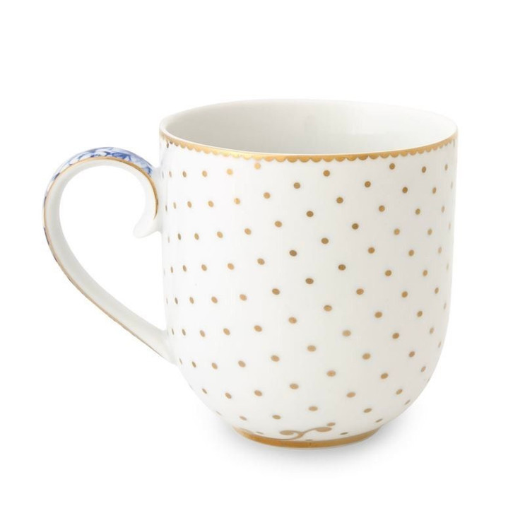 با این ماگ زیبا از Pip Studio از چای، کاپوچینو، شکلات داغ و موارد دیگر لذت ببرید. این ماگ بخشی از مجموعه Royal White است که از چینی سفید با رنگهای آبی ملایم و عناصر طلایی تشکیل شده است. ظرفیت آن ۲۶۰ میلیلیتر است و ۱۰۰٪ از چینی ساخته شده است. خالهای طلایی رنگ در قسمت بیرونی ماگ، تضاد زیبایی با جزئیات آبی روی دسته ماگ ایجاد میکند. میتوان آن را به زیبایی با سایر ظروف چینی از مجموعه Royal White از Pip Studio ست کرد.
