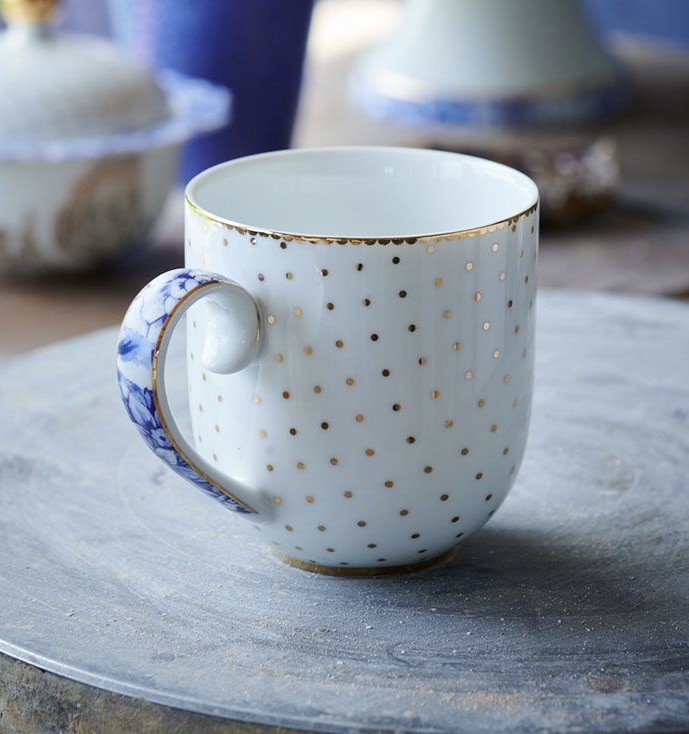 با این ماگ زیبا از Pip Studio از چای، کاپوچینو، شکلات داغ و موارد دیگر لذت ببرید. این ماگ بخشی از مجموعه Royal White است که از چینی سفید با رنگهای آبی ملایم و عناصر طلایی تشکیل شده است. ظرفیت آن ۲۶۰ میلیلیتر است و ۱۰۰٪ از چینی ساخته شده است. خالهای طلایی رنگ در قسمت بیرونی ماگ، تضاد زیبایی با جزئیات آبی روی دسته ماگ ایجاد میکند. میتوان آن را به زیبایی با سایر ظروف چینی از مجموعه Royal White از Pip Studio ست کرد.